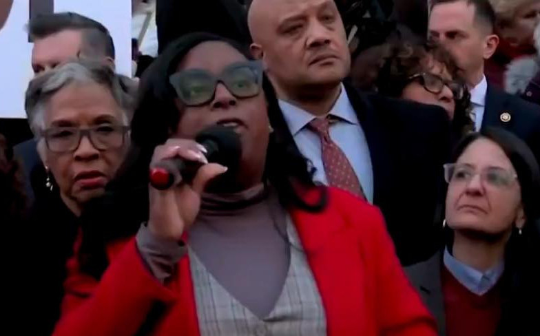 Feb. 2025 – Rep. LaMonica McIver (D-NJ) has called for aggressive action against President Trump’s administration during a protest outside the Dept. of the Treasury in Washington, D.C.