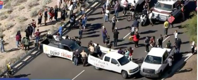 In March, 2016, fascist democrats blocked a three lane highway so Trump supporters couldn’t get to his rally in Arizona. After three hours, the police FINALLY did their job and began towing protestor vehicles away. (21)