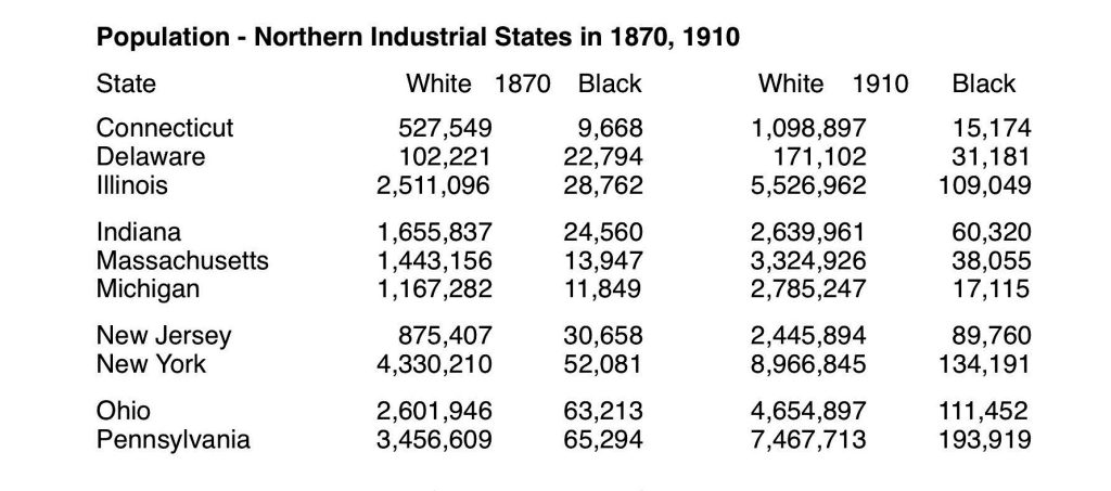 Most blacks lived in the south prior to the Civil War and for decades after the War. The South was primarily agricultural. In 1860, the South had only one-ninth the industrial capacity of the North. The North